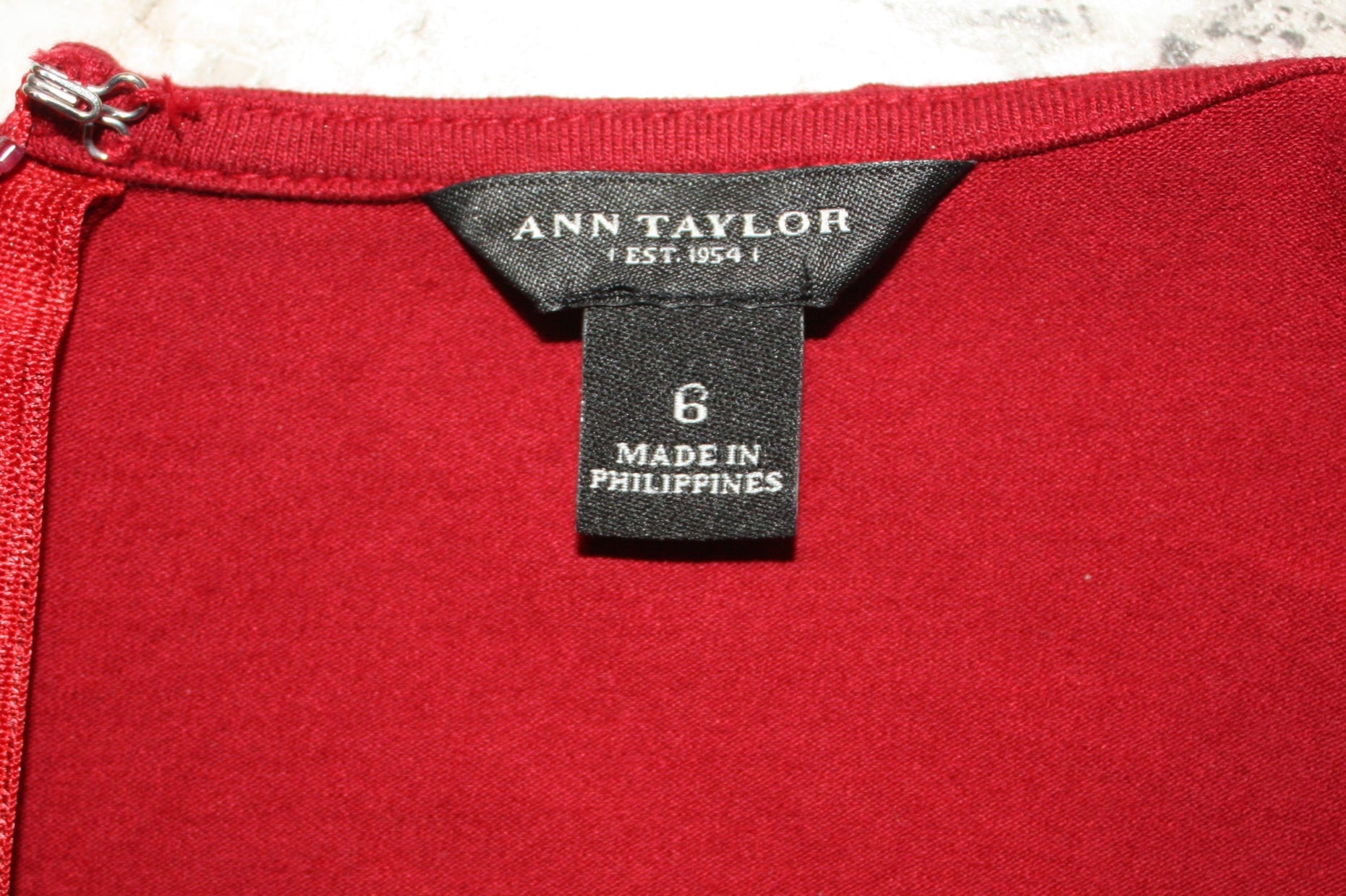 Add timeless elegance to your wardrobe with this Ann Taylor red faux wrap dress. Crafted in a soft stretch knit, this universally flattering silhouette features a surplice neckline, 3/4 sleeves, and a self-tie waist that creates a beautiful, defined shape. The deep crimson hue is bold yet classic—perfect for both day and evening occasions.