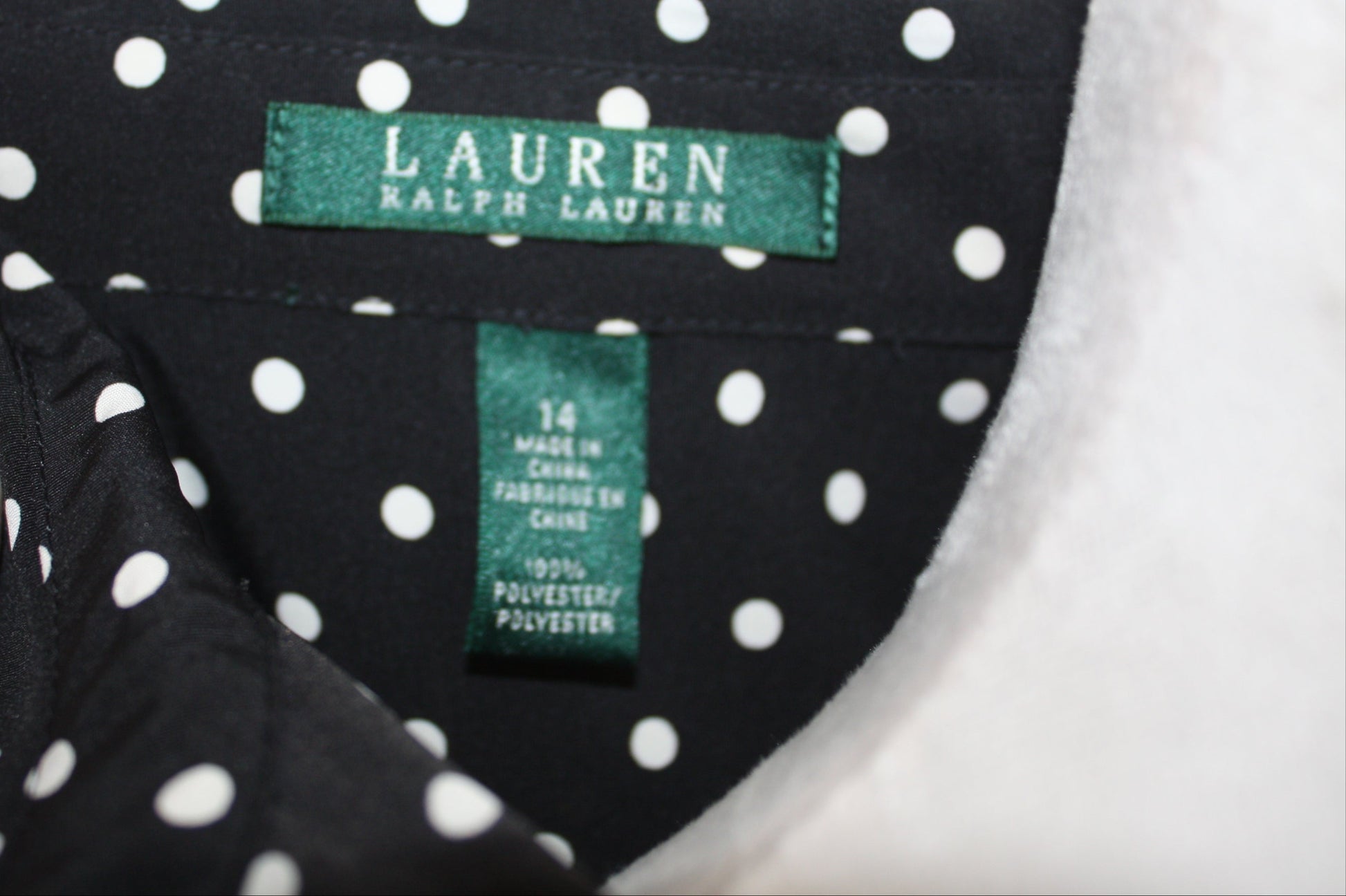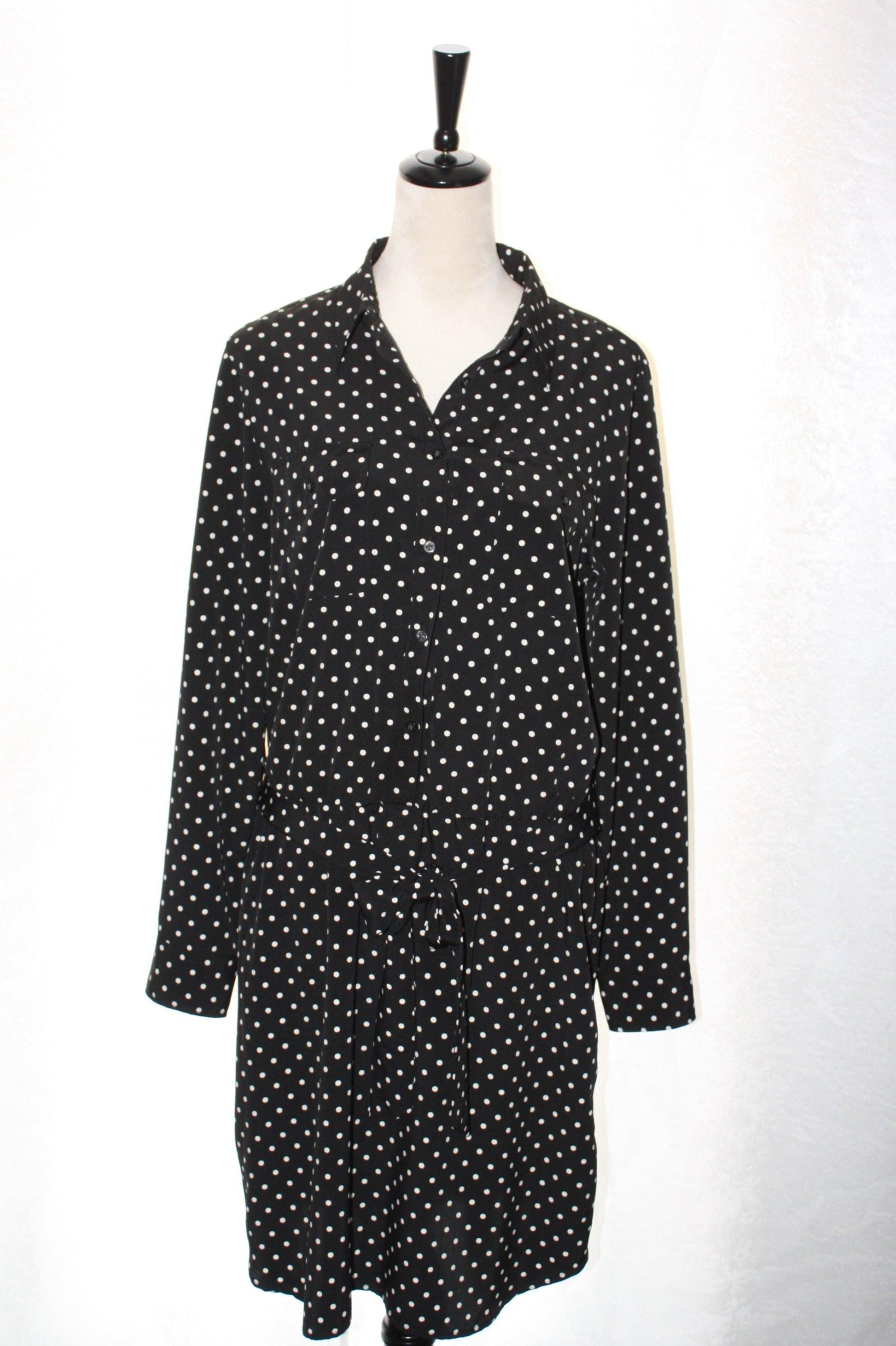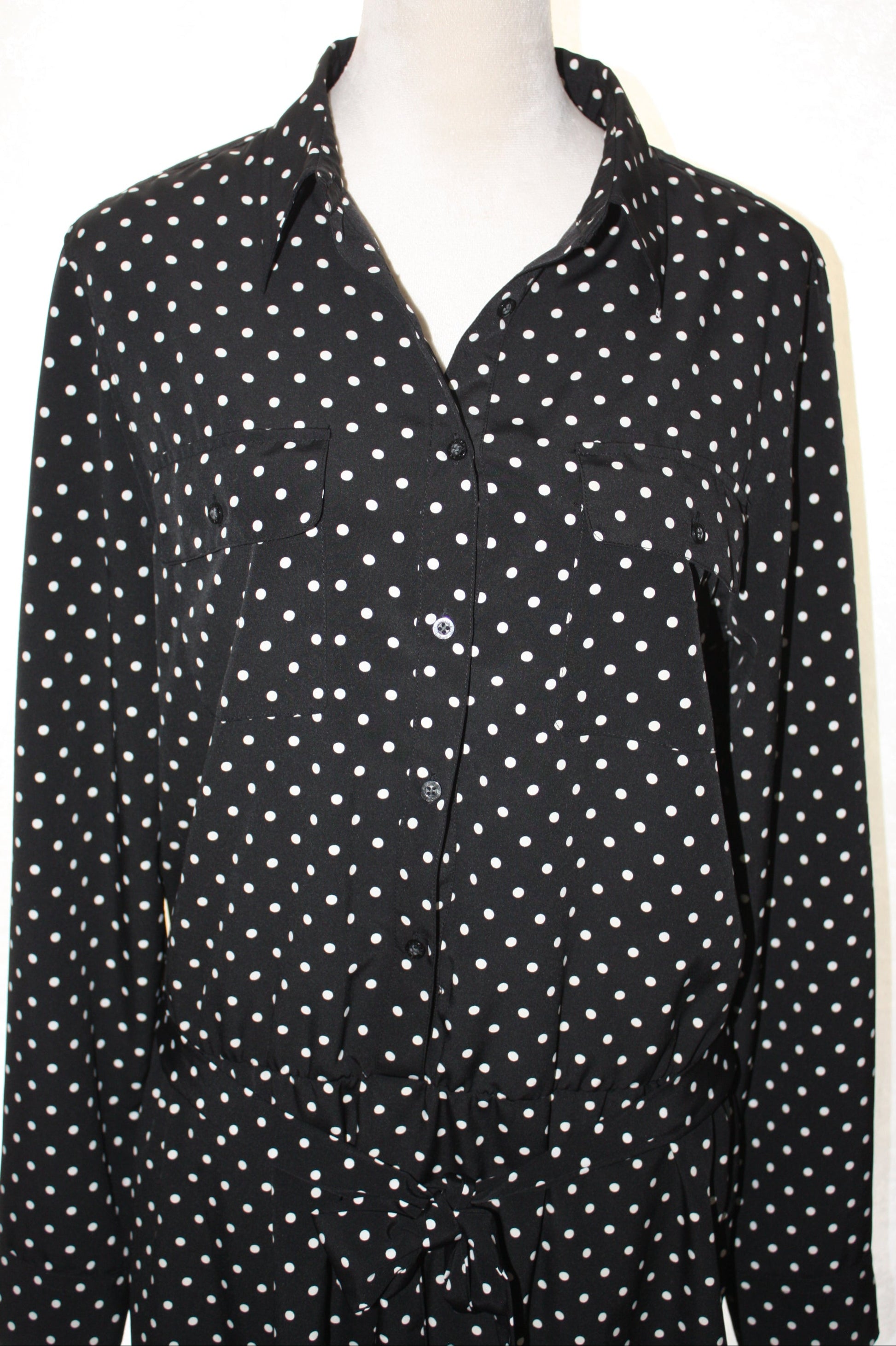 Lauren Ralph Lauren Black Polka Dot Shirt Dress, Women's, Size 14, Pre-Owned