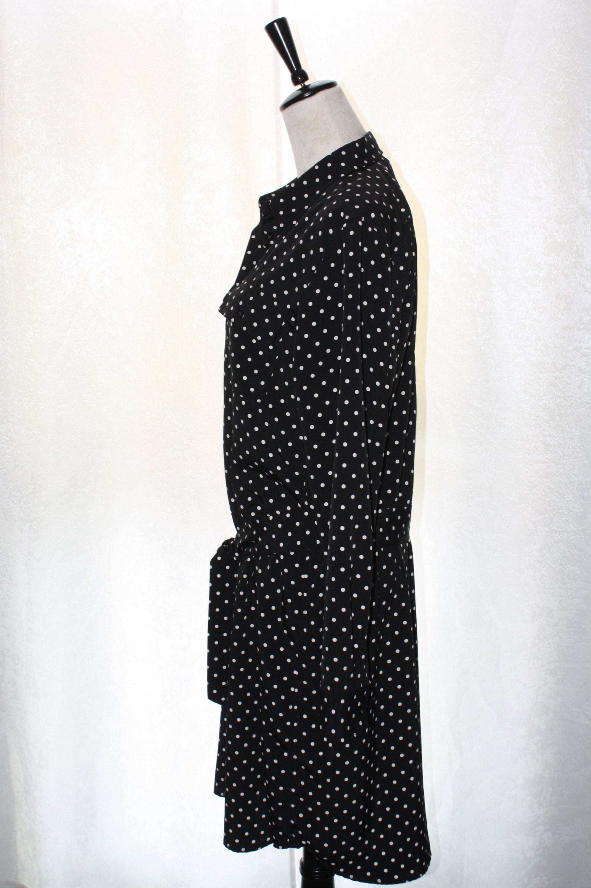Ralph Lauren Black Polka Dot Shirt Dress, Women's, Size 14, Pre-Owned