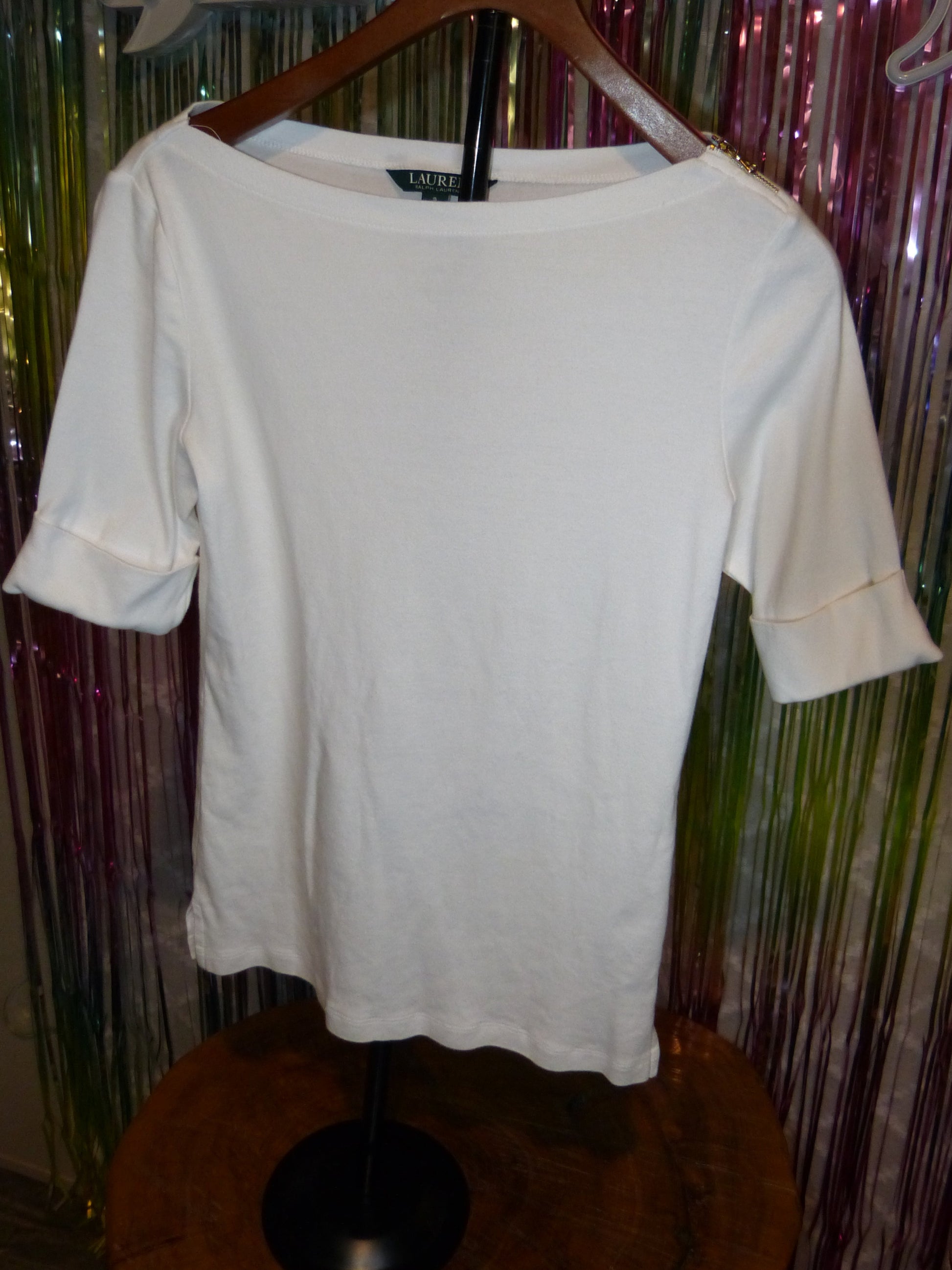 Lauren Ralph Lauren White Elbow-Sleeve Top – Size Small, Pre-Owned